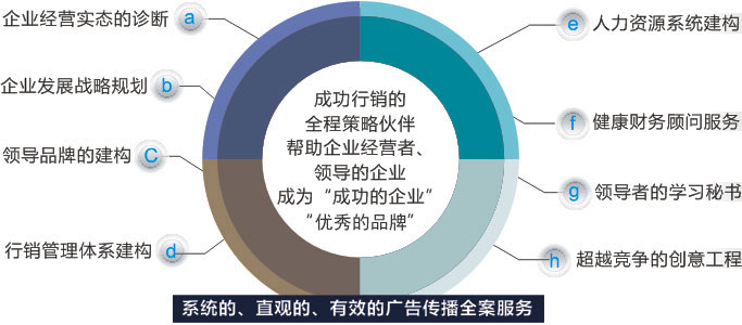 營銷創(chuàng)新、視覺創(chuàng)新、媒體組合創(chuàng)新,向客戶提供營銷推廣的系統(tǒng)解決方案